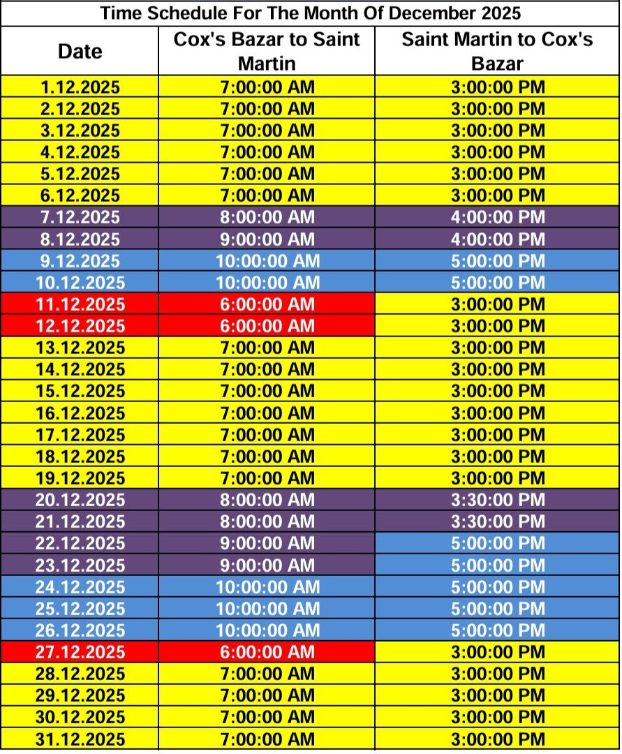 *জোয়ার ভাটার কারণে জাহাজ ছাড়ার সময় পরিবর্তন হতে পারে।